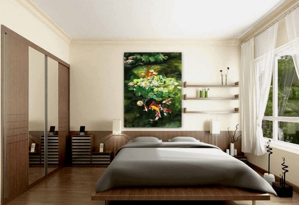 Bạn không nên đặt những bức tranh trang trí phức tạp, có khung lớn có thể tạo cho con người cảm giác ngột ngạt và khiến họ không thể ngủ yên.