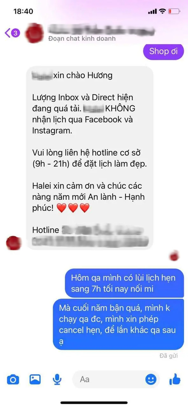 "Đã từng đối mặt với làn sóng 'lay-off' trong năm nay nên mình không muốn phải đẩy bản thân vào cảnh không còn đồng nào trong người thêm lần nào nữa. Mình cũng không muốn hủy lịch hẹn đã đặt trước vì như thế sẽ ảnh hưởng tới tiệm, nhưng cũng may đó là chỗ người quen nên khi biết lý do, họ cũng hiểu và cảm thông cho mình. Ngoài ra mình báo lại sớm nên tiệm cũng nhanh chóng tìm được khách khác để dồn vào lịch trống hôm đó luôn. Dù sao mình cũng cảm thấy rất tiếc và muốn xin lỗi tiệm, nhưng bản thân không còn cách nào khác..." - Hiền Anh ngậm ngùi.