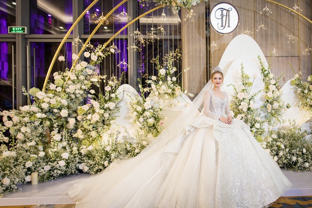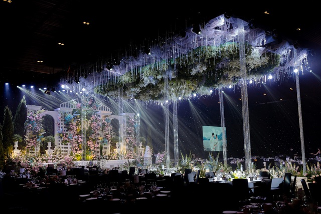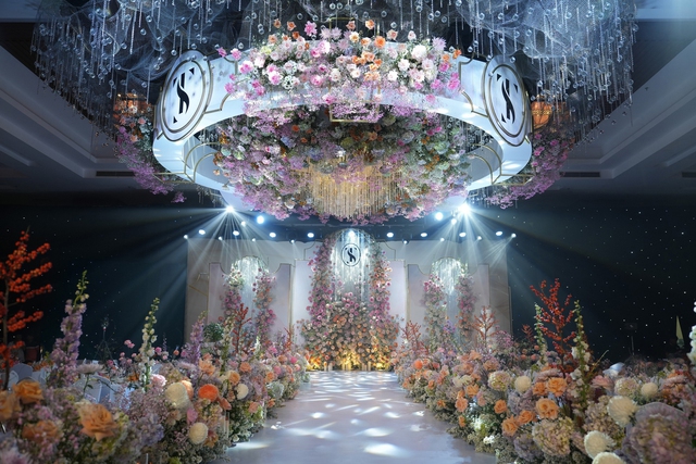 “100 - 150 triệu sẽ bao gồm các hạng mục cơ bản như sân khấu, đường dẫn lên sân khấu, khu photobooth - chụp hình check-in, khu bàn lễ tân - gallery, cổng hoa. Với những tiệc cưới cao cấp và không gian rộng thì còn có thêm hạng mục trần thả sẽ là điểm nhấn lớn. Hiện tại bên mình đã làm khá nhiều tiệc lớn với mức chi phí khoảng 1-2 tỷ đồng riêng cho phần decor. Còn lượng hoa sử dụng thường rất nhiều và khó tính toán con số cụ thể. Tuy nhiên chi phí hoa chủ yếu sẽ chiếm khoảng 20 - 30% tổng chi phí”, anh Điệp chia sẻ.