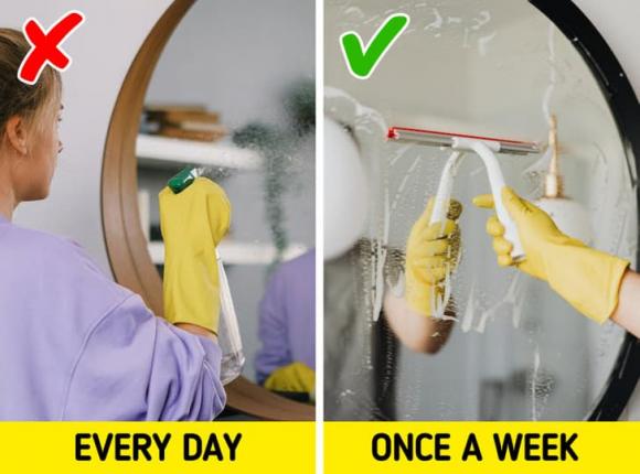 Xịt nước lau kính lên gương mỗi ngày khiến các đốm đen xuất hiện xung quanh các cạnh hoặc thậm chí ở giữa. Tốt nhất bạn nên lau gương không quá một lần một tuần để tránh tình trạng này.