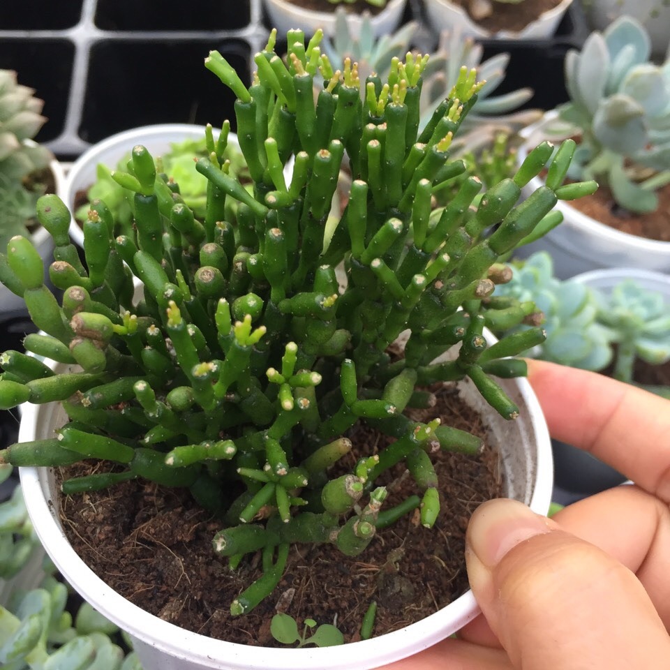 Loại cây này còn được gọi là cây kim giao, cây xương khô, cây xương cá,… là một loại cây mọng nước, tỷ lệ ra hoa rất thấp, hoa có màu trắng vàng, trông rất nhỏ nhắn và dễ thương.