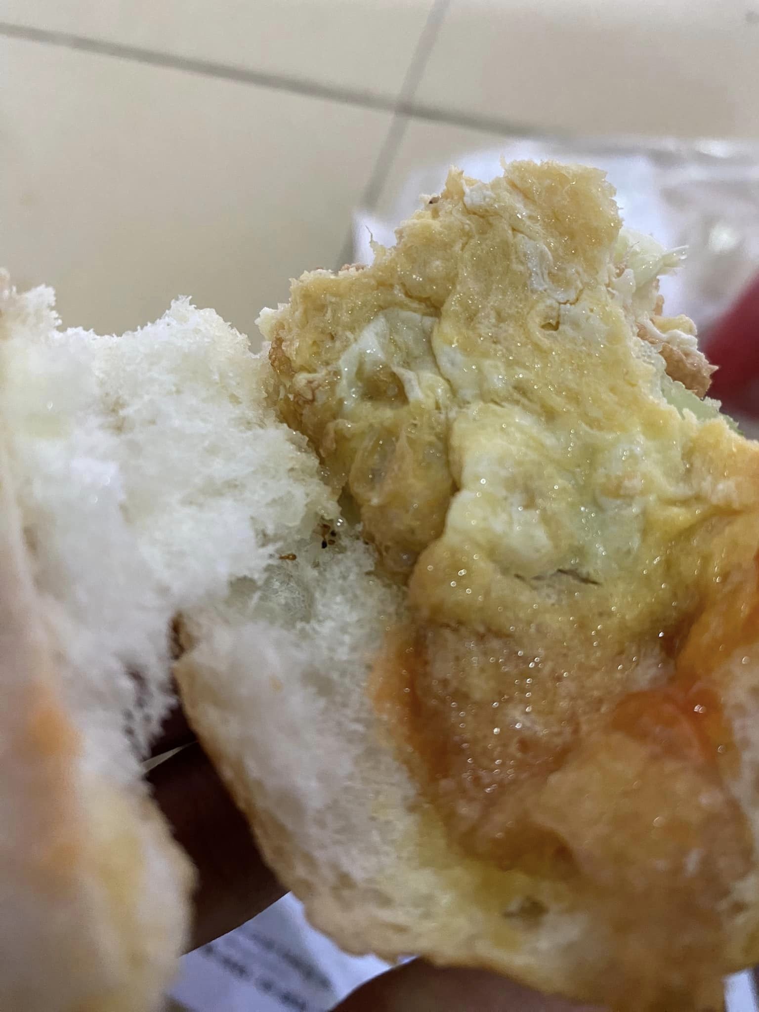 "Buổi sáng như mọi khi mình hay đặt đồ ăn trên *** Food, lần đầu đặt ở *** mà gặp ngay quả như ảnh thì thôi đến ạ, không bao giờ có lần thứ 2. Bánh mì thập cẩm mà nhân lèo tèo, rau thì héo úa luôn. Tiếc của nên ăn bình thường, ăn vào thì thấy trứng rất mặn, ăn gần hết rồi mới thấy có kiến bò ở ra tay và vỏ bánh. Thấy lạ nên nhìn kỹ thì ôi trời, có 3 con đang bò trong bánh. Lật miếng trứng thì kinh khủng hơn là nguyên 1 ổ nó nằm ở đó. Nhìn thì đoán là nhân viên làm ăn rất không có tâm, thấy có kiến như vậy mà vẫn cố tình cho nhân vào để làm cho khách...