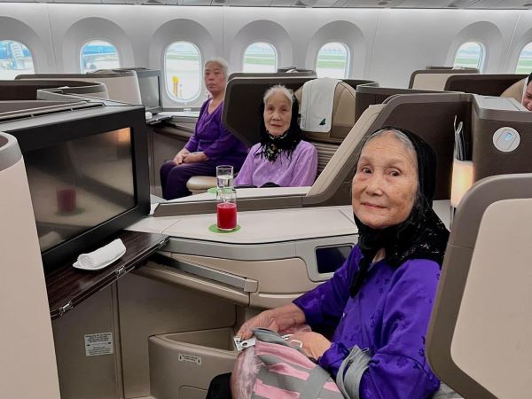 Cụ bà 100 tuổi cùng em dâu, em gái bay hạng thương gia du lịch Phú Quốc gây sốt