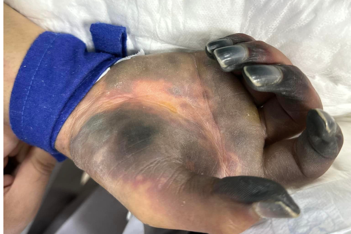 Thạc sĩ Phạm Văn Phúc, Phó Trưởng Khoa Hồi sức tích cực, cho biết khi nhập viện, bệnh nhân trong tình trang sốc nhiễm trùng, suy đa tạng, viêm phổi, phải can thiệp thở máy, lọc máy… Hiện tại bệnh nhân đã thoát được cơn nguy kịch. Tuy nhiên, các đầu chi ngón tay, ngón chân đã bị hoại tử.