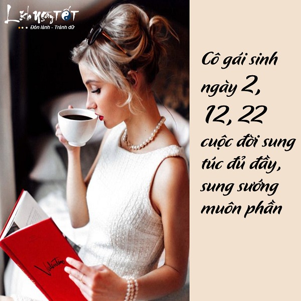 Xem bói số cuối ngày sinh, con số 2 trong nhiều nền văn hóa được xem là con số mang đến may mắn, cát lành. Phụ nữ có ngày sinh kết thúc bằng số 2 thì nghiễm nhiên cũng được hưởng lây sự may mắn đó. Nếu như sinh nhật của bạn rơi vào các ngày 2, 12 hay 22 âm lịch thì từ khi sinh ra, số mệnh đã định rằng bạn có cuộc sống sung túc, không phải lo lắng nhiều về chuyện cơm áo gạo tiền.