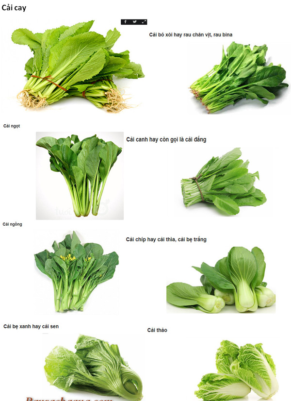 Rau cải có nhiều loại, chẳng hạn như: cải xanh, cải ngọt, cải bắp, cải xoong, cải thảo, cải chít, củ cải, cải cúc… Trong đông y, tất cả các loại cây màu xanh nào cũng đều có tác dụng thanh nhiệt, riêng rau cải có tác dụng thanh nhiệt gấp đôi.
