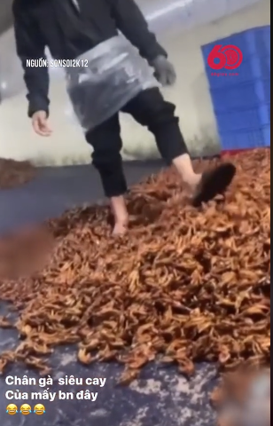 Gần đây, người dùng trên mạng xã hội TikTok đang chia sẻ "ầm ầm" một đoạn video ghi lại quy trình sản xuất món chân gà siêu cay. Trong video, chân gà được bày la liệt dưới sàn nhà thành từng đống, thậm chí nhân viên còn thản nhiên đi dép giẫm đạp lên chân gà - thứ mà sau đó được cho là sẽ đóng gói và mang ra thị trường tiêu thụ.