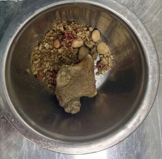 "Dị vật" lớn nhất lấy ra là viên sỏi san hô to như trứng gà có nhiều nhánh (kích thước 5 cm), khoảng 5-6 viên sỏi kích thước khoảng 1cm và hàng trăm viên sỏi nhỏ hơn với đủ kích thước, hình dạng...