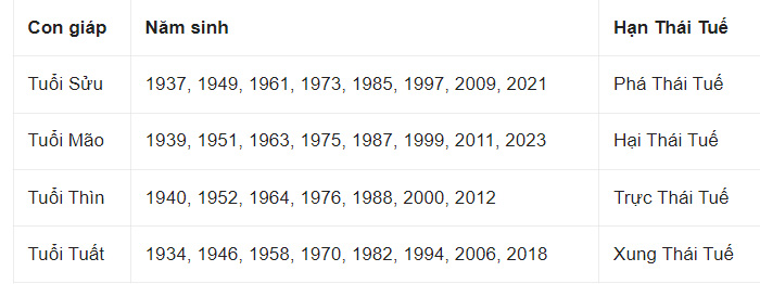 Chi tiết các tuổi phạm Thái Tuế 2024