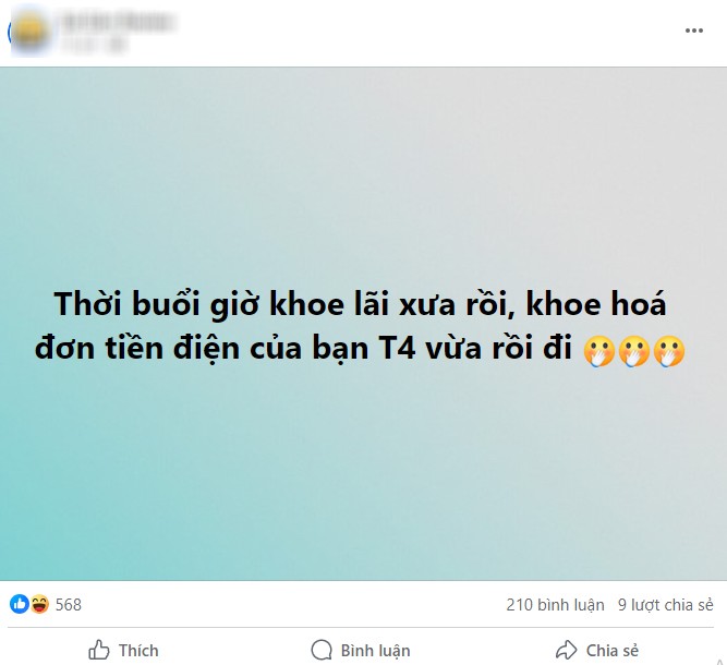 Trên các diễn đàn mạng xã hội, vấn đề hóa đơn tiền điện cũng đang nhận được nhiều sự quan tâm. Rất nhiều người than thở vì thời tiết nắng nóng gay gắt kéo dài buộc phải sử dụng máy điều hòa liên tục nên hóa đơn tiền điện "nhảy vọt". Dưới phần bình luận, nhiều người chia sẻ hóa đơn tiền điện tháng 4 của gia đình đã tăng gấp rưỡi, gấp đôi; có gia đình chỉ riêng tiền điện thôi cũng đã gần chục triệu.
