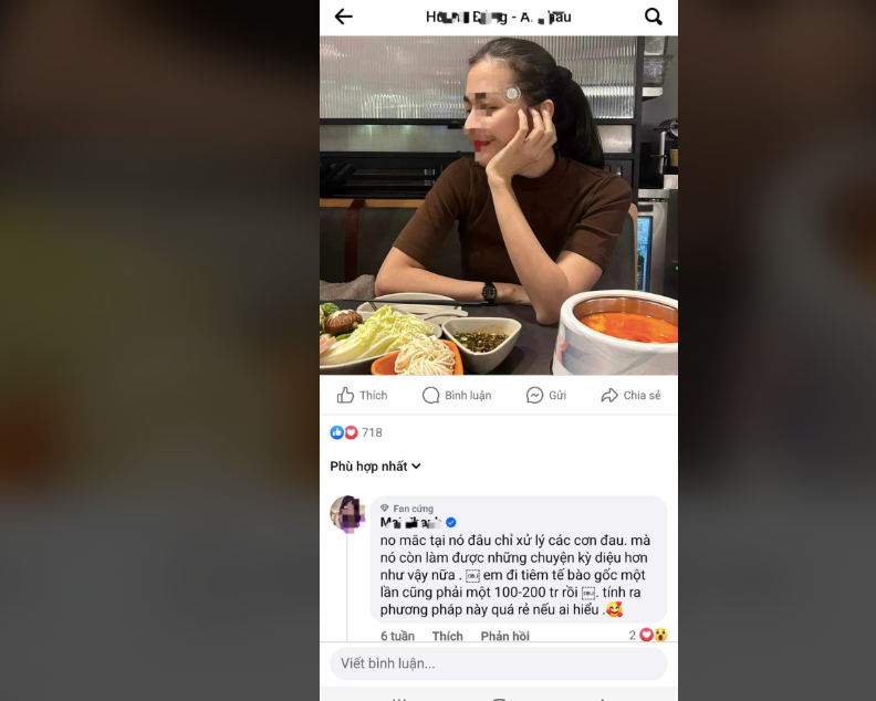 Không ít người quen của bác sĩ Hà có điều kiện kinh tế đã tin quảng cáo, sang nước ngoài tiêm truyền sản phẩm gọi là tế bào gốc. Với nữ giới, họ được hứa hẹn sẽ có làn da đẹp, căng sáng, trẻ hóa, khỏe toàn thân; còn quý ông được mời chào với lời hứa sẽ hết tiểu đường, tăng cường sinh lực...