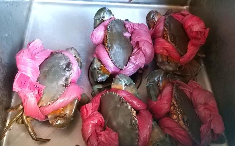 Bên cạnh đó, ngoài yếu tố giữ ẩm, sợi dây còn giúp cua không bị gãy chân, càng khi vận chuyển. Nếu cua bị gãy càng sẽ bị mất thẩm mỹ, bán không được giá.