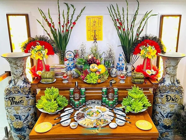 Cách sắp xếp bàn thờ khi đặt hai bình hoa