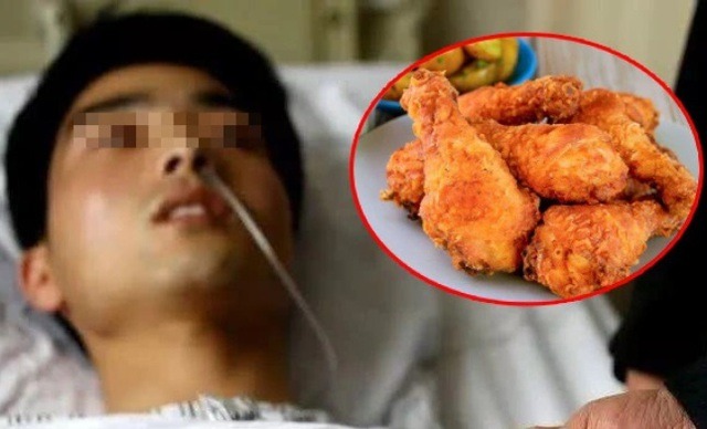 Sau khi hỏi thêm, bác sĩ được biết nam thanh niên thích đồ ăn nhiều dầu, muối, đường, luôn gọi đồ về ăn, đặc biệt thường ăn gà rán vào bữa trưa, dẫn đến chỉ số mỡ máu cao gấp 100 lần so với tiêu chuẩn.