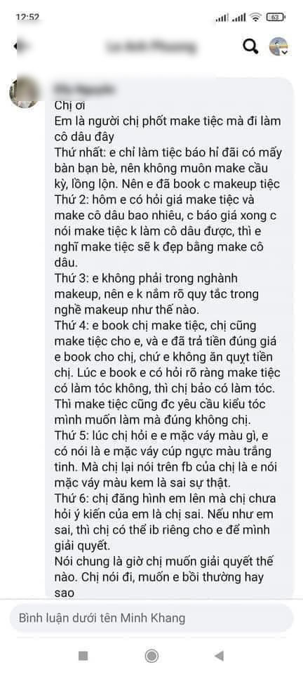 Tuy nhiên, khi thợ makeup đăng bài viết lên để cảnh báo khách thì lại nhận được luồng ý kiến trái chiều. Thợ makeup chia sẻ nguyên văn rằng: