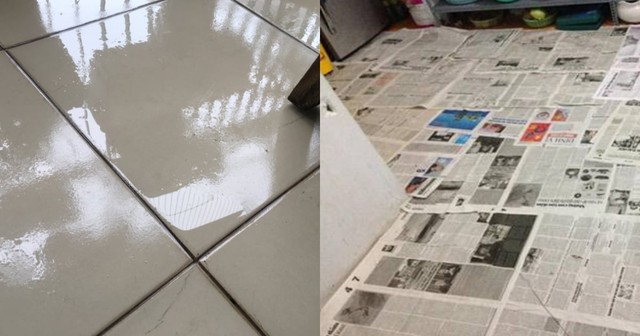 2. Phủ lên sàn nhà những tấm nhựa, thảm hay những tờ giấy báo, giúp thấm hút phần nào độ ẩm. Tuy nhiên với thảm, sẽ phải giặt thường xuyên, còn giấy báo thì phải thay liên tục.