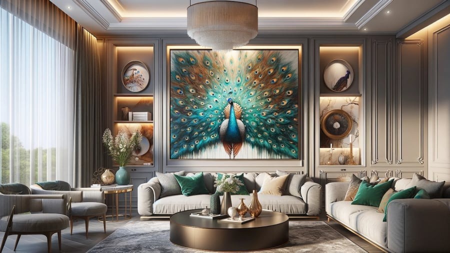 Khổng tước hay còn gọi là chim công - chim hoàng gia, là đại diện của Phượng Hoàng. Tranh Khổng tước là biểu tượng của sự quyền lực, quý phái, giàu có và sung túc.