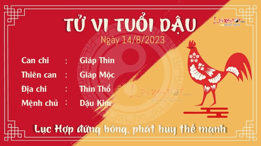 Nhờ Lục Hợp che chở, công danh sự nghiệp của người tuổi Dậu tăng mạnh nhờ biết cách phát huy thế mạnh của bản thân. Tuy nhiên, có đôi khi bạn dễ kích động, vì hiếu thắng mà hành sự bất cẩn, chưa suy xét kỹ càng đã làm nên khó tránh rắc rối. Đó là lý do bạn sẽ cần hợp tác với người khác để luôn được nhắc nhở kịp thời. Ngày này tài lộc không đến nỗi tồi. Các nguồn thu chính và phụ đều tăng, kinh doanh có lãi, người làm công ăn lương cũng có thêm khoản thu bên ngoài. Một vài người còn có thêm khoản thưởng kha khá nên không phải lo lắng về chuyện chi tiêu trong thời gian tới. Thổ sinh Kim là dấu hiệu cho thấy tình duyên của tuổi Dậu vô cùng tốt, đào hoa nở rộ giúp các mối quan hệ thăng cấp nhanh chóng. Không khí giữa các cặp đôi vô cùng lãng mạn, vợ chồng tình cảm yêu thương và quan tâm nhau như thuở mới yêu.