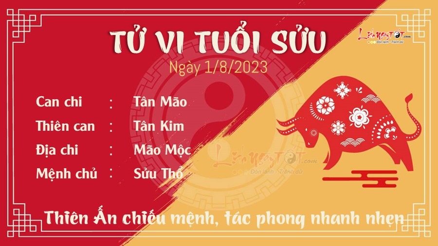 Thiên Ấn chiếu mệnh đem lại tác phong nhanh nhẹn và sự thông minh cho con giáp này trong quá trình làm việc. Đi làm thì cũng tập trung vào việc mình làm thôi, không thích tham gia vào chuyện phiếm vì sợ ảnh hưởng tới năng suất của bản thân. Chuyện tiền bạc không có biến động lớn, bạn khá tử tế và sòng phẳng trong vấn đề nợ nần, nói được làm được, không nói phét. Thời gian tới nếu rảnh rỗi thì bạn có thể tìm thêm nghề tay trái kiếm tiền sinh hoạt hàng ngày. Ở đường tình cảm, Mộc Thổ bất dung cho thấy Sửu dễ gặp trục trặc trong vấn đề cưới hỏi, sinh nở. Còn trong mối quan hệ bạn bè, càng hết lòng giúp đỡ người ta thì bạn càng sớm sáng mắt ra vì cách sống khó ưa của một vài người bạn.