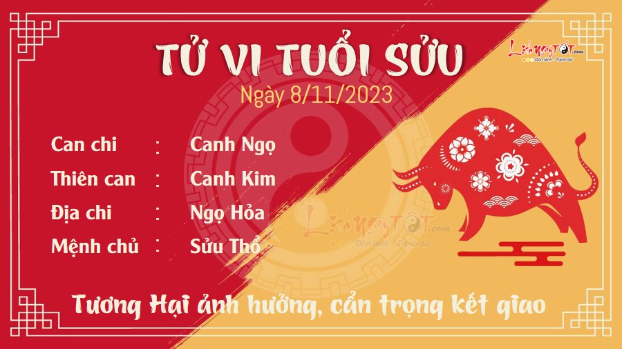 Do ảnh hưởng của cục diện Tương Hại, người tuổi Sửu cần thận trọng khi kết giao với mọi người. Không phải ai nhiệt tình, tốt bụng với bạn cũng thực sự muốn tốt cho bạn. Đó có thể là kẻ tiểu nhân tìm cách tiếp cận để lợi dụng bạn mà thôi.