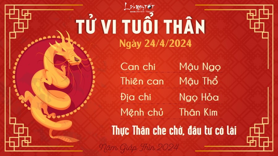 Tử vi hàng ngày 24/4/2024 của 12 con giáp thấy, Hỏa sinh Thổ, người tuổi Thìn có những quan điểm tích cực và cởi mở hơn trong chuyện tình cảm. Bạn đã dần quên đi người cũ và dành cho người chân thành với mình cơ hội tiếp cận.