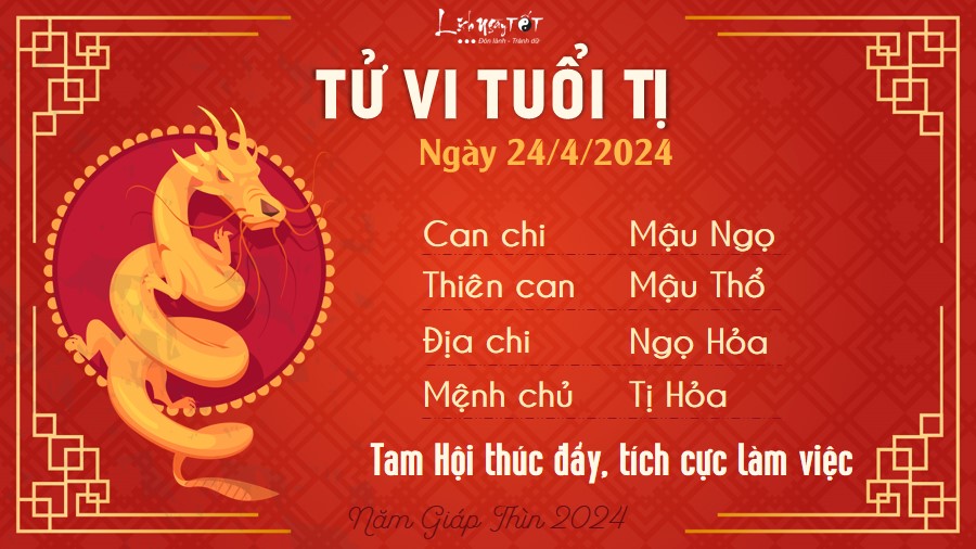 Nhờ có Tam Hội thúc đẩy, người tuổi Tị duy trì được trạng thái làm việc hăng hái, tích cực trong thời điểm này. Nhờ vậy, bạn có thể giải quyết những vấn đề xảy ra trong công việc một cách trơn tru, thậm chí truyền được tinh thần làm việc cho người khác.