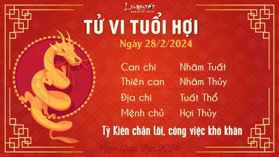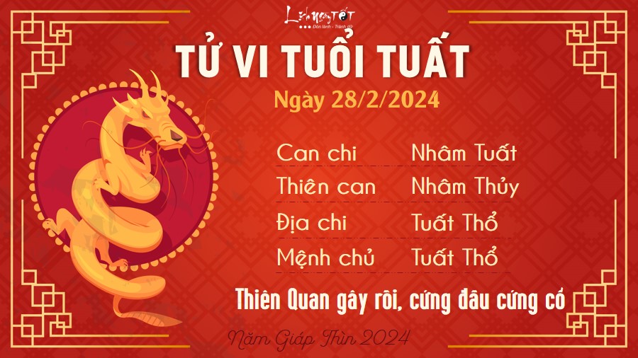 Căn cứ tử vi hàng ngày 28/2/2024 của 12 con giáp, cục diện Tương Xung ám hại, người tuổi Thìn có thể tự đẩy mình vào rắc rối do cái tính nóng nảy gây nên. Bạn dễ chuyện bé xé ra to, gây khó chịu cho chính bản thân và người khác.