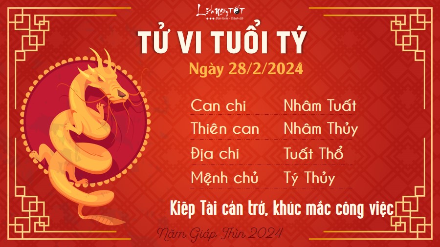 Xem tử vi hàng ngày 28/2/2024, Kiếp Tài cản trở, con đường sự nghiệp của người tuổi Tý sẽ gặp phải nhiều khúc mắc trong ngày hôm nay. Tốt nhất bạn nên học cách trao đổi và hợp tác với mọi người xung quanh, đừng khăng khăng làm việc theo ý mình.