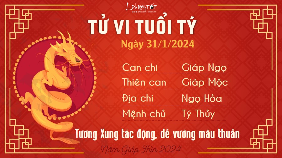 31/01/2024 13:00Tử vi 12 con giáp hôm nay - thứ 4 ngày 31/01/2024: Sửu đề phòng tiểu nhân, Tuất rủng rỉnh