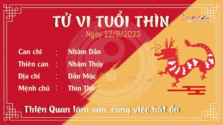 Công việc của Thìn khá bất ổn vì lâm Thiên Quan. Bạn phải cẩn thận trong từng đường đi nước bước để tránh sai lầm có thể gây hậu quả nặng nề. Những người sắp đi phỏng vấn thì nên đến sớm, đừng để nhà tuyển dụng có ấn tượng xấu đối với bạn. Bù lại tình hình tiền bạc cực tốt nhờ Tam Hội soi sáng. Mọi xui xẻo về tiền của bạn trong ngày này biến mất, tinh thần lạc quan hơn hẳn. Tài ăn nói, học hỏi nhanh nhẹn của Thìn là chìa khóa giúp bạn thu được nhiều tiền bạc về phía mình trong công việc kinh doanh. Về tình cảm, do ngũ hành Mộc Thổ bất dung, bạn luôn tự ti khi ở cạnh người ấy và điều này khiến hai bạn ngày càng xa nhau. Những cặp đôi đang yêu xa thì hay nghi ngờ nhau, không có sự tin tưởng, có điềm phản bội hoặc bị gia đình ngăn cản.
