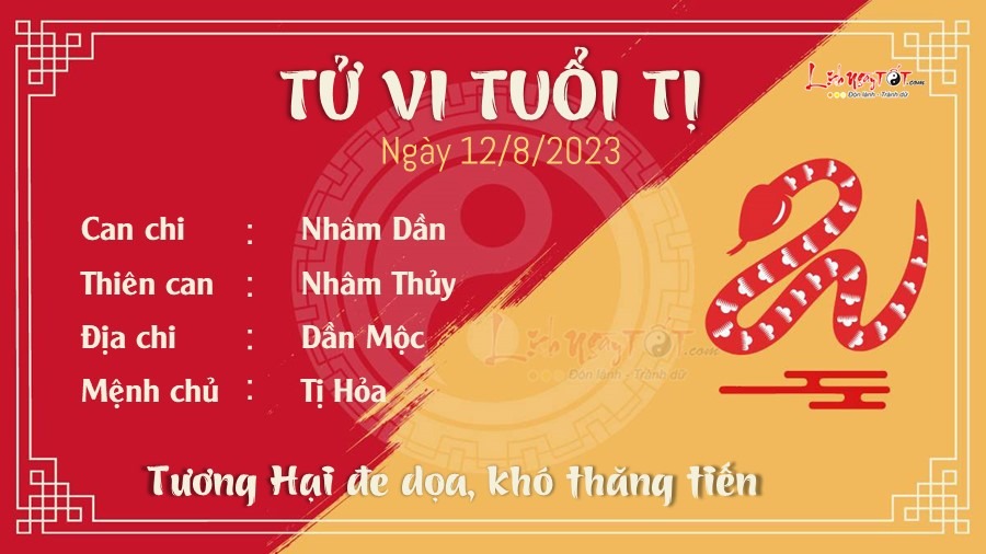 Dần - Tị Tương Hại không có lợi cho công việc của tuổi Tị. Nếu không nỗ lực, bạn vẫn là một người bình thường mờ nhạt, khó có thể thăng tiến. Khi giá trị của bạn tăng lên hãy giữ cho mình khiêm tốn và nói ít đi, càng nói dai nói dài thì càng kém sang. Về tiền bạc, nhờ Thiên Tài hỗ trợ nên Tị có thể bảo toàn số tiền trong túi của mình. Tiền bạc hanh thông, ổn định, nếu có ý định kinh doanh phải tìm đúng người để hợp tác hoặc mở hàng. Lộc lá từ công việc phụ cũng khá dày, hãy tận dụng truyền thông để quảng bá sản phẩm. Ngũ hành Mộc sinh Hỏa cho biết đường tình duyên của Tị khá đẹp. Có thể không có tình yêu nhưng không thể không có tiền và bạn bè, Tị cực kỳ lạc quan và thực tế. Với gia đình, bạn luôn dành sự ưu tiên đặc biệt, không bao giờ để người thân chịu thiệt.