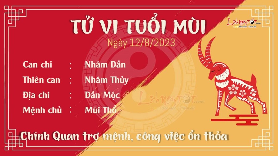 Chính Quan trợ mệnh, tuổi Mùi không phải lo lắng quá nhiều về công việc vì mọi việc cuối cùng cũng ổn thỏa. Mùi cần cù, chịu khó và chăm học hỏi nên vận may trong công việc của bạn cũng tăng lên, không còn phải ôm việc về nhà, cuối tuần có thời gian dành cho bản thân. Nhờ biết cách chọn lựa đối tác mà nguồn thu nhập của đương số sẽ được tăng lên. Khoản đầu tư thông minh nhất của bạn ở thời điểm hiện tại đó là những khoản dành cho con cái, cha mẹ và kiến thức của bản thân. Tuy nhiên, ngũ hành Mộc khắc Thổ cho thấy những bất ổn tiềm ẩn trong đường tình của bản mệnh. Mùi ngày càng cô đơn vì chẳng còn thời gian cho những cuộc tụ tập bạn bè, mang tiếng keo kiệt. Những người muốn đi du lịch vào ngày này dễ có tranh cãi với người lạ.