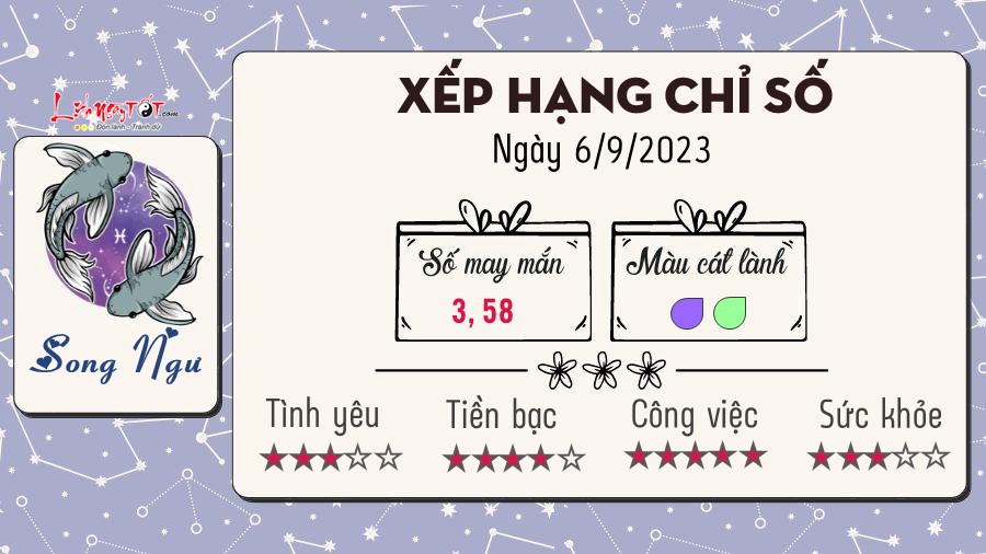 06/09/2023 13:10Tử vi 12 cung hoàng đạo hôm nay - thứ 4 ngày 06/9/2023: Kim Ngưu thuận lợi, Song Ngư gặp rắc rối