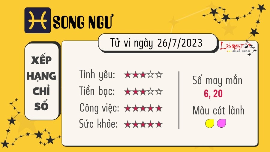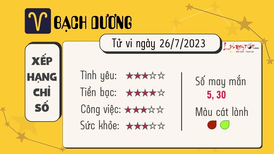 Tử vi hôm nay 26/7 về tài lộc, công việc, tình yêu của 12 cung hoàng đạo: