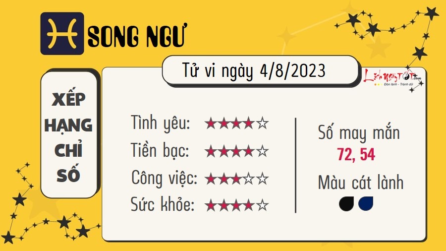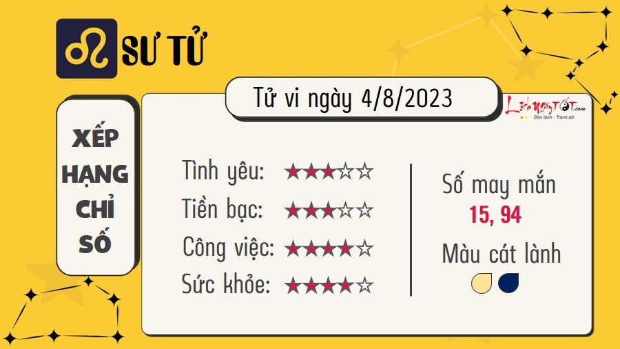 Tử vi hôm nay 04/8 về tài lộc, công việc, tình yêu của 12 cung hoàng đạo:
