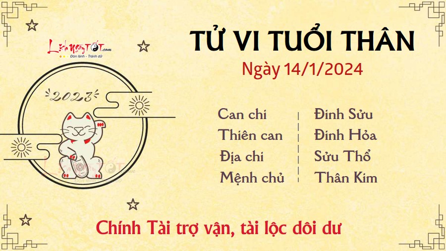 Tử vi ngày 14/01/2024 tức ngày 04/12 theo lịch âm năm Quý Mão của 12 con giáp: