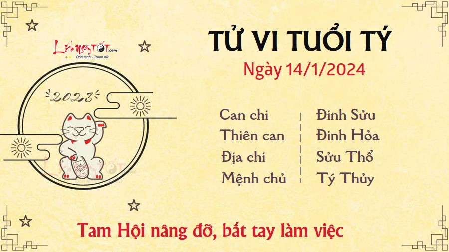 Theo tử vi hàng ngày 14/1/2024 của 12 con giáp, Tam Hội nâng đỡ, người tuổi Tý có một ngày may mắn và thuận lợi. Đây là thời điểm thích hợp để bạn bắt tay vào hiện thực hóa những kế hoạch trên giấy tờ từ lâu, cơ hội thành công là rất lớn.