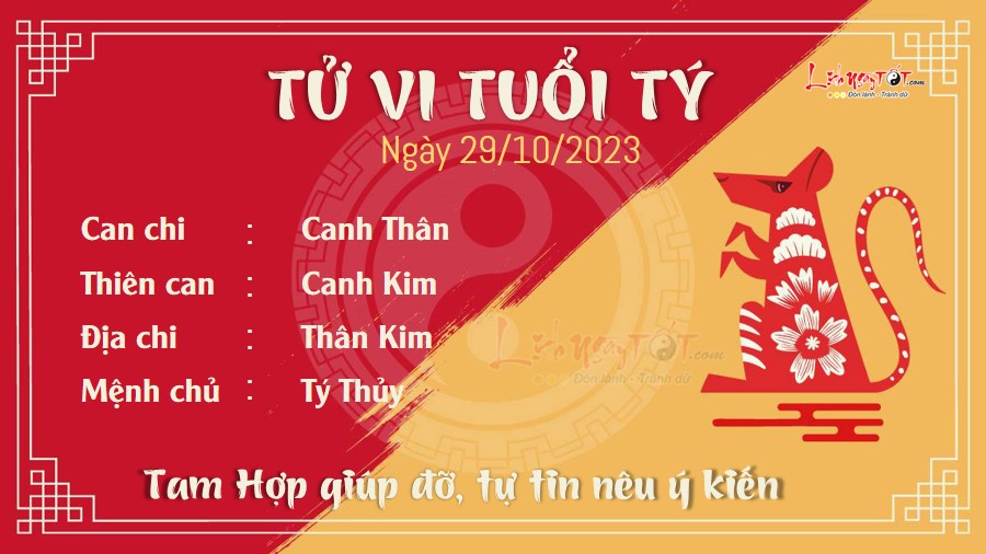 1. Tử vi ngày 29/10/2023 tuổi Tý