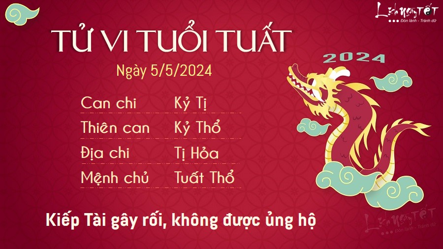 Kiếp Tài gây rối, người tuổi Tuất không nhận được sự đồng tình, ủng hộ của người khác trong thời điểm này. Có thể bạn đang đưa ra những kế hoạch quá thiếu thực tế hoặc những lý do không thực sự thuyết phục.