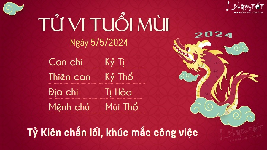 Tử vi hàng ngày 5/5/2024 của 12 con giáp thấy, Hỏa sinh Thổ, người tuổi Thìn có thể được nhận tin vui trên phương diện tình cảm trong thời điểm này. Người độc thân đã chủ động hơn trong việc tiếp cận người mình yêu mến, đối phương cũng dành cho bạn những tín hiệu tích cực.