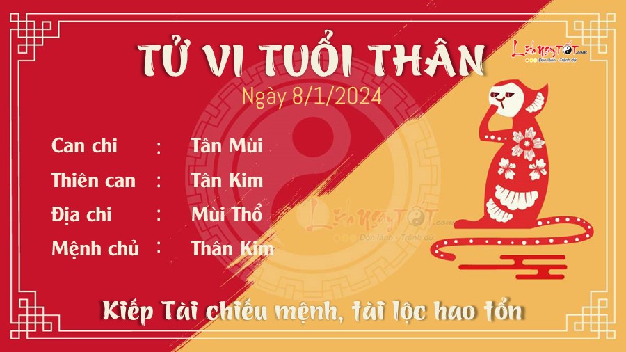 9. Tử vi tuổi Thân ngày 8/1/2024