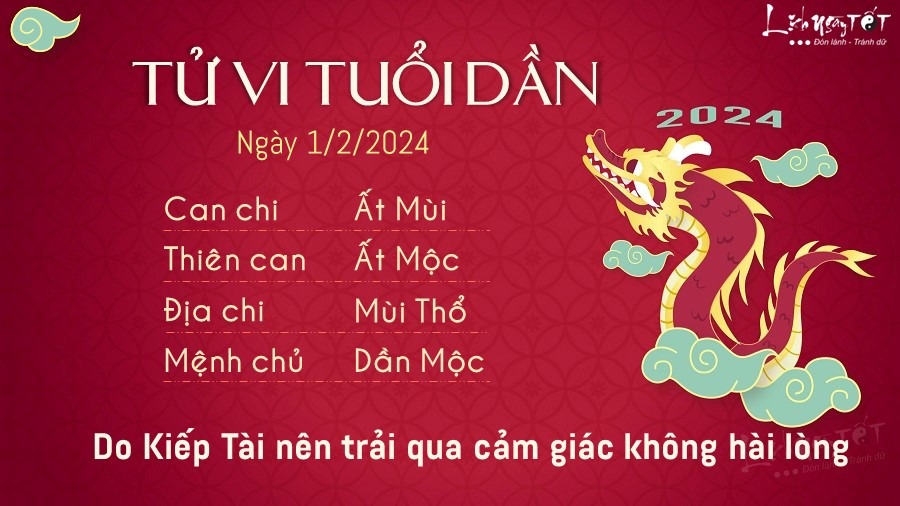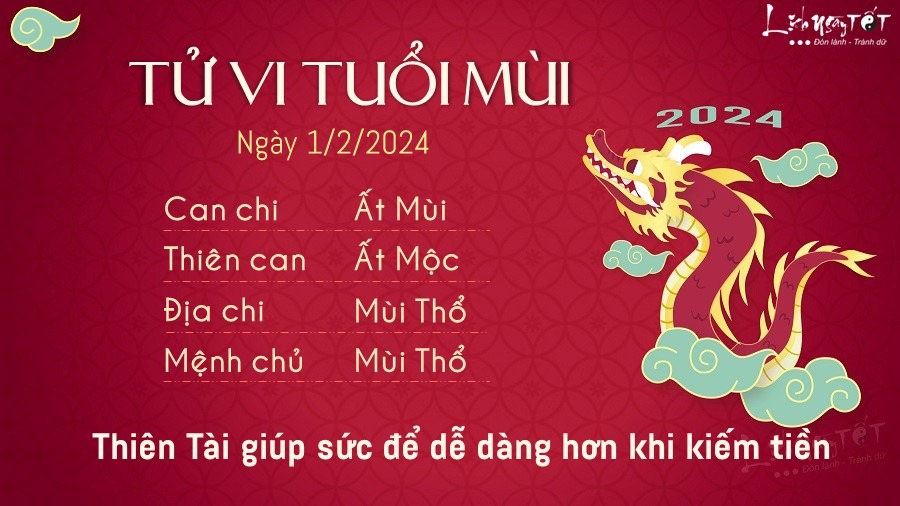 01/02/2024 13:00Tử vi thứ 5 ngày 1/2/2024 của 12 con giáp: Thìn dư dả, Hợi hạnh phúc