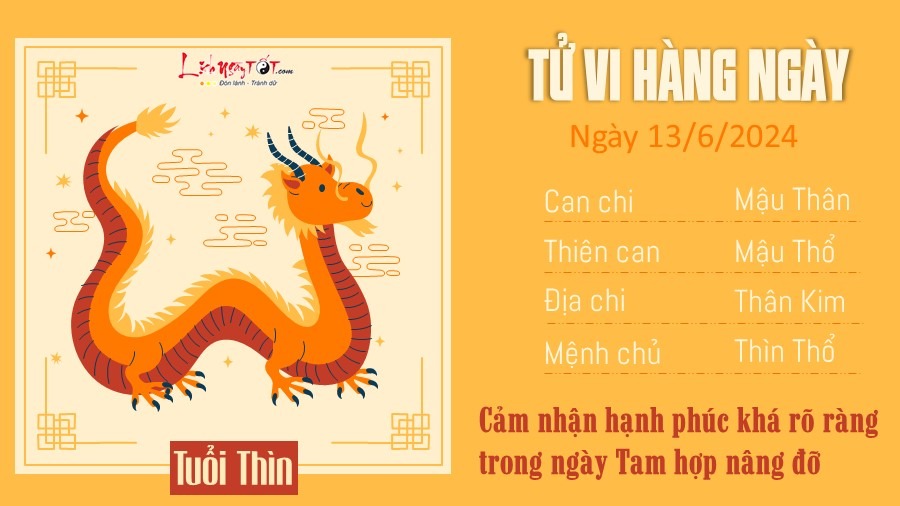 Tiếp nối tử vi hàng ngày 12/6/2024, con giáp tuổi Thìn cảm nhận hạnh phúc khá rõ ràng trong ngày Tam hợp nâng đỡ. Bạn cũng rất vui vì khiến người thân hạnh phúc, dễ chịu, bạn cũng hãy dành thời gian bên những người quan trọng.