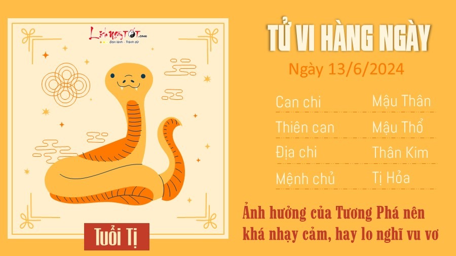 Ngày có Thiên Ấn nâng đỡ nên tuổi Tị lúc này sẽ có quý nhân phù trợ, giúp bạn khá nhiều trong các lĩnh vực đời sống, nhất là ở phương diện tình cảm. Tuy vậy, hãy cẩn thận bởi sự nghiệp của bạn gặp một vài vấn đề không tốt cho lắm, cần bạn phải bình tĩnh giải quyết để tránh hậu quả khôn lường về sau.