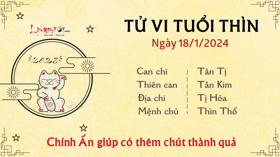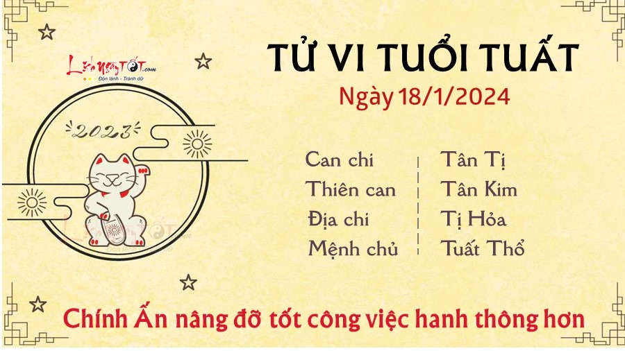 Tử vi hàng ngày 18/1/2024 của 12 con giáp, Chính Ấn nâng đỡ tốt cho khía cạnh công việc, tương trợ cho tuổi Tuất đang theo đuổi con đường sự nghiệp. Nói chung nhiều người có thể gặt hái thành công như ý trong thời gian này.