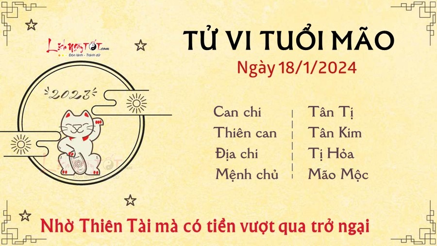 Nhờ có Thiên Tài mà con giáp tuổi Mão có sẵn tiền, vượt qua được những trở ngại trước mắt trong gang tấc. Tuy thế cũng không được chủ quan, bạn luôn cần có những biện pháp an toàn, tối ưu nhất cho mình nhé.