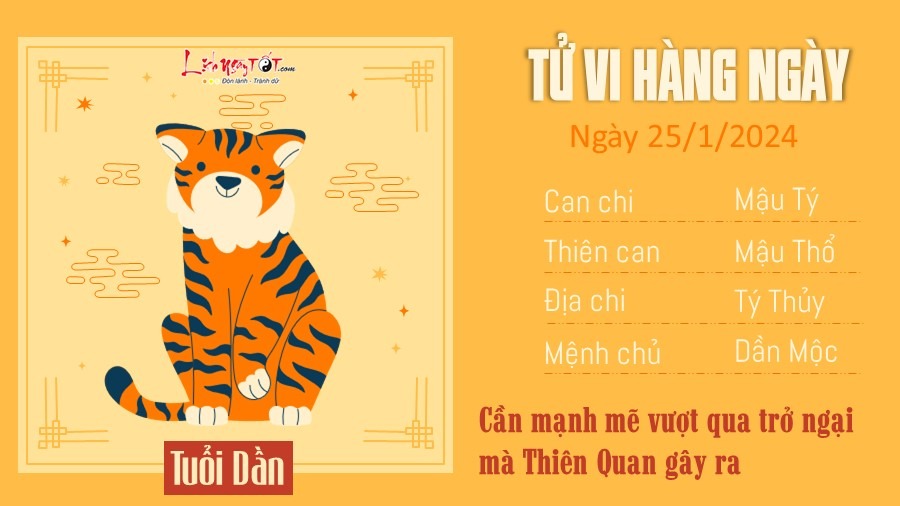Tử vi hàng ngày 25/1/2024 của 12 con giáp, tài lộc của tuổi Tý gia tăng với sự che chở của Chính Tài, may mắn sẽ tìm đến bạn. Tình hình tài chính cũng có xu hướng phát triển hơn trước rất nhiều.