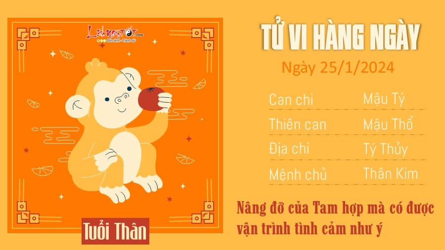 Tử vi hàng ngày 25/1/2024 của 12 con giáp, nhờ có Tam Hợp nâng đỡ nên phương diện tình cảm của con giáp tuổi Thìn thời gian này cũng có nhiều điều hứa hẹn. Đối với những người độc thân, bạn sẽ có cơ hội gặp được nửa kia có cùng tần số cũng như quan điểm sống.