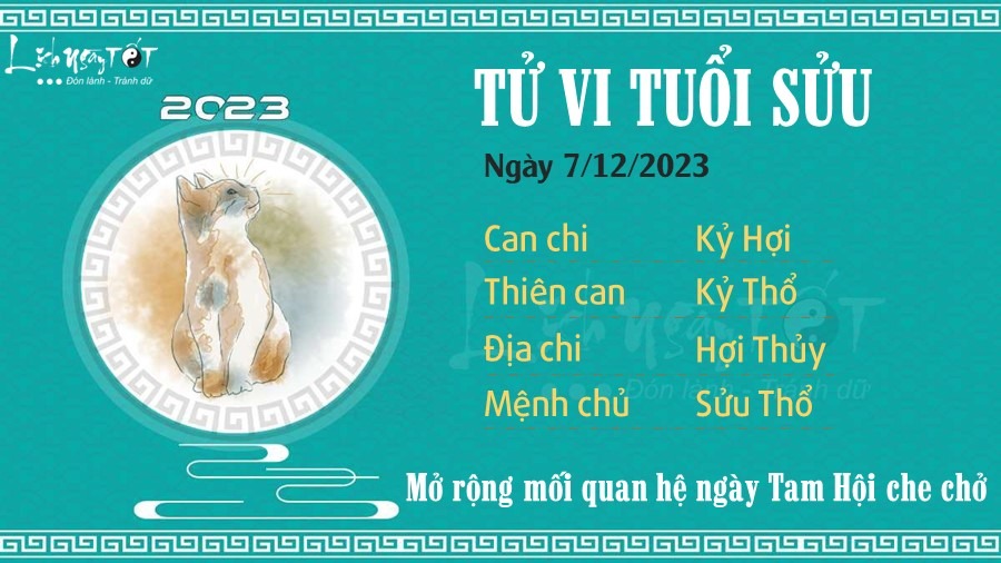 Tử vi hàng ngày 7/12/2023 của 12 con giáp, tuổi Sửu có cơ hội để mở rộng các quan hệ trong ngày Tam Hội che chở. Có thể đó sẽ là mối quan hệ tình cảm với các nàng/chàng độc thân, hoặc một cộng sự tiềm năng sẽ xuất hiện.