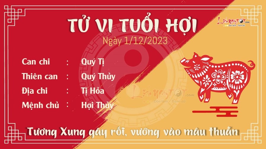 Tương Xung tác động không nhỏ lên vận trình của người tuổi Hợi trong hôm nay. Bạn có thể vướng vào những mâu thuẫn và tranh cãi không đáng có. Con giáp này dù không phải là người chủ động gây sự nhưng rắc rối cứ tự tìm đến. Bạn còn có thể bị lãnh đạo hiểu lầm và cho rằng bạn làm việc tắc trách.
